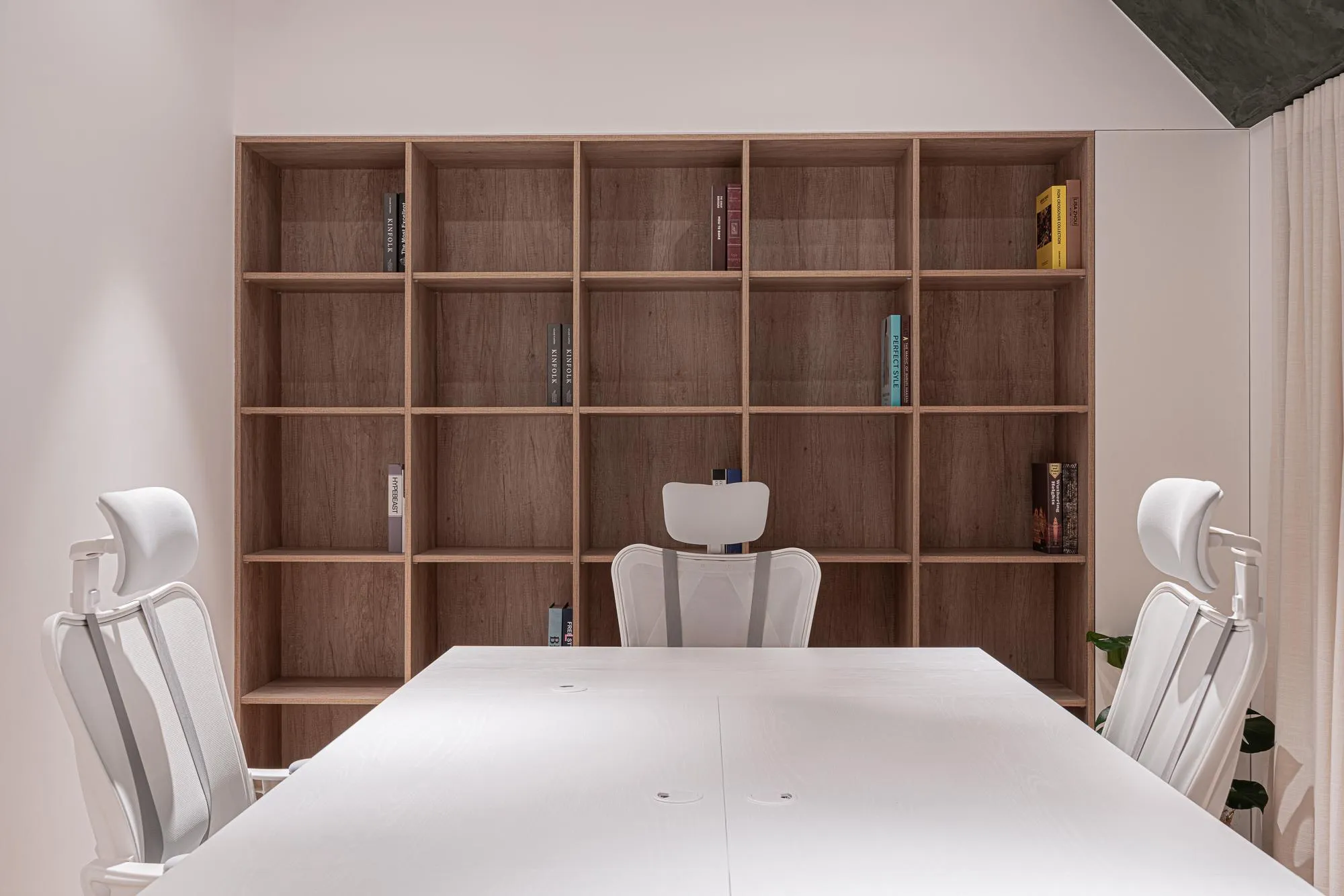 透過空間比例的掌控、動線配置、光的運用與光的反射下,設計師為工作室營造出舒適、自在的氛圍,為室內與室外創造連結,讓人與人之間自然而然地在這個場域中交集和連結,在互動過程中激盪出更多想法。