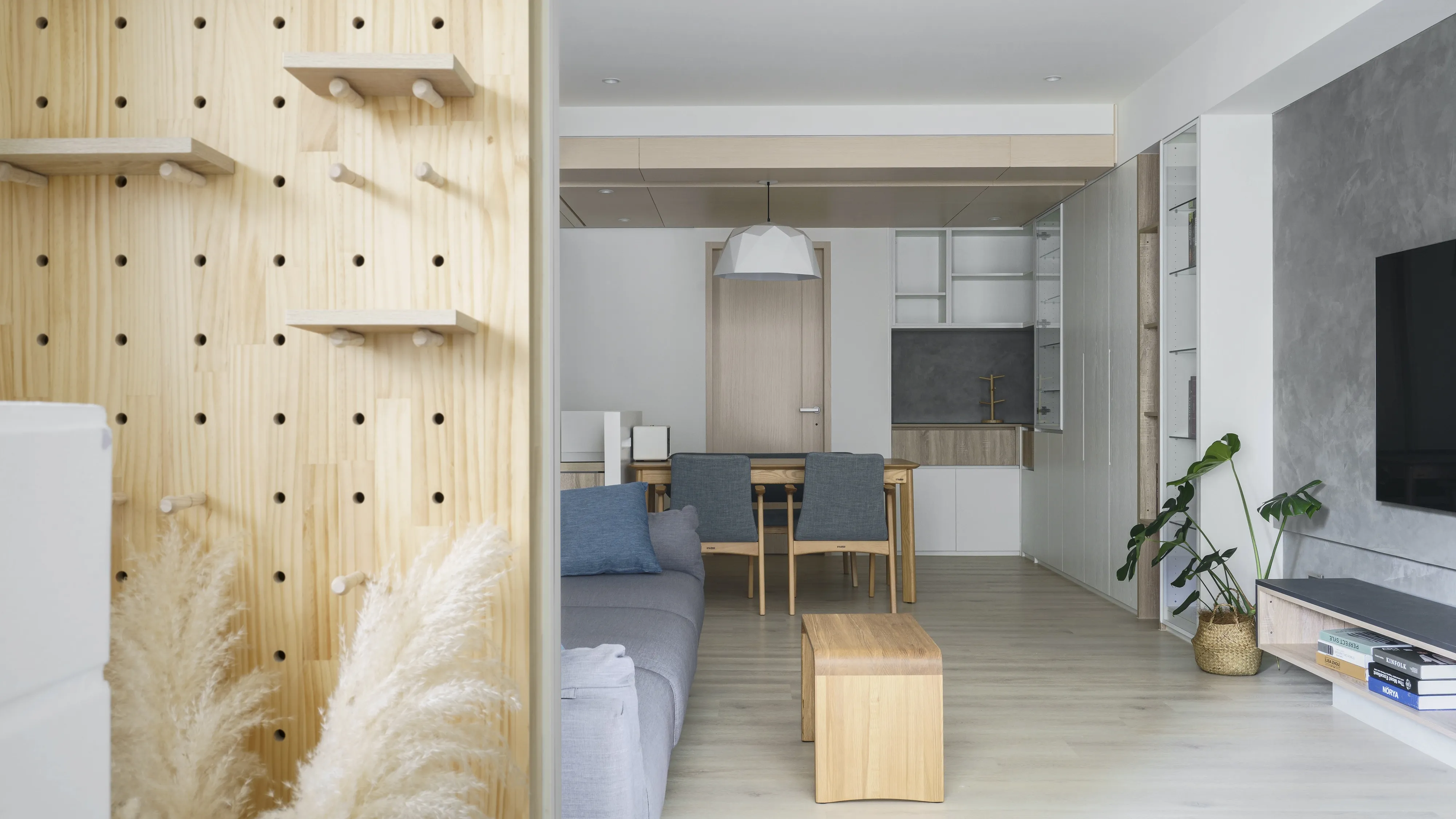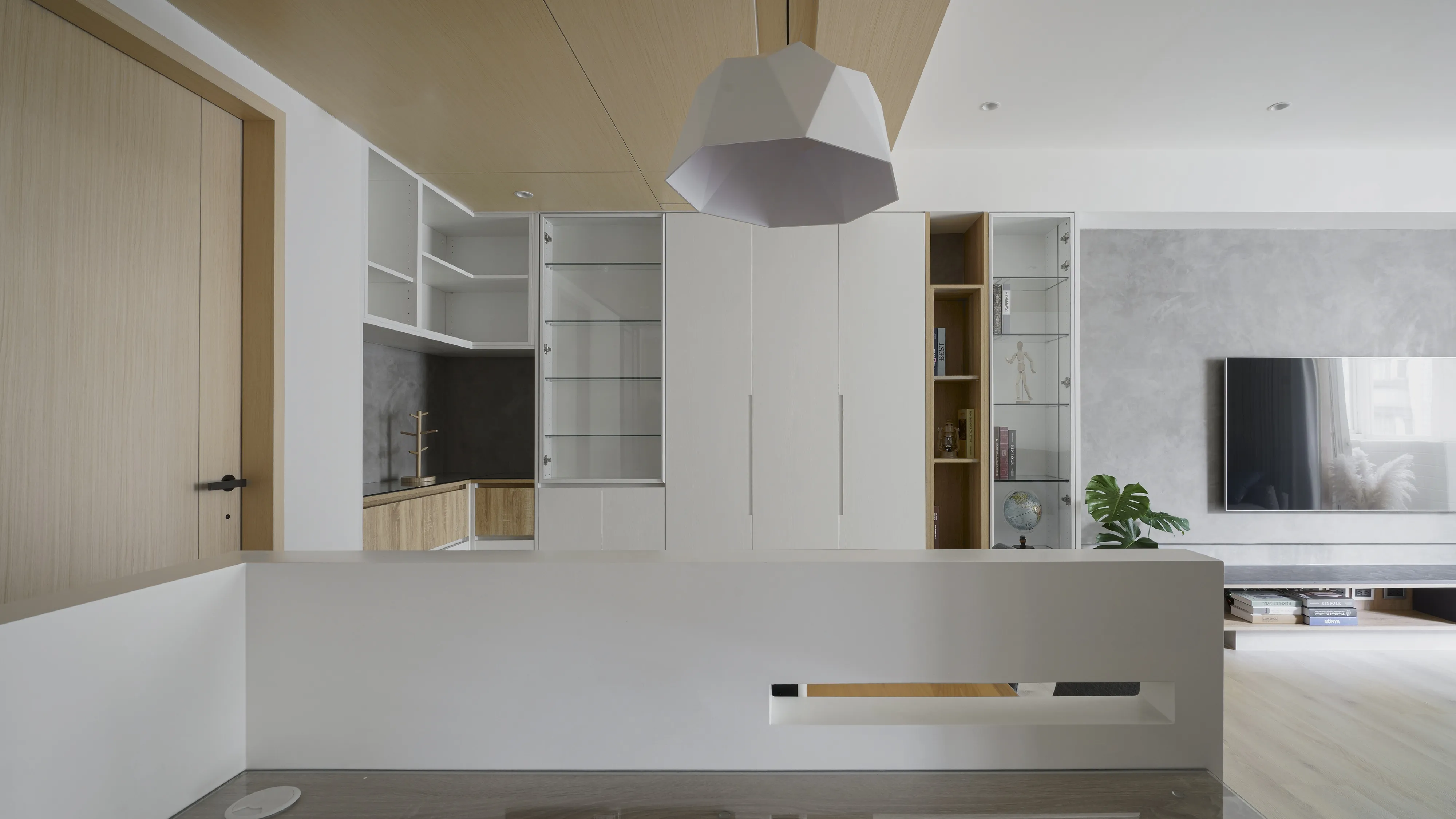 由玄關延伸至客廳散落至每個空間 , 達到每個休息空間環繞客廳及餐廳 ,