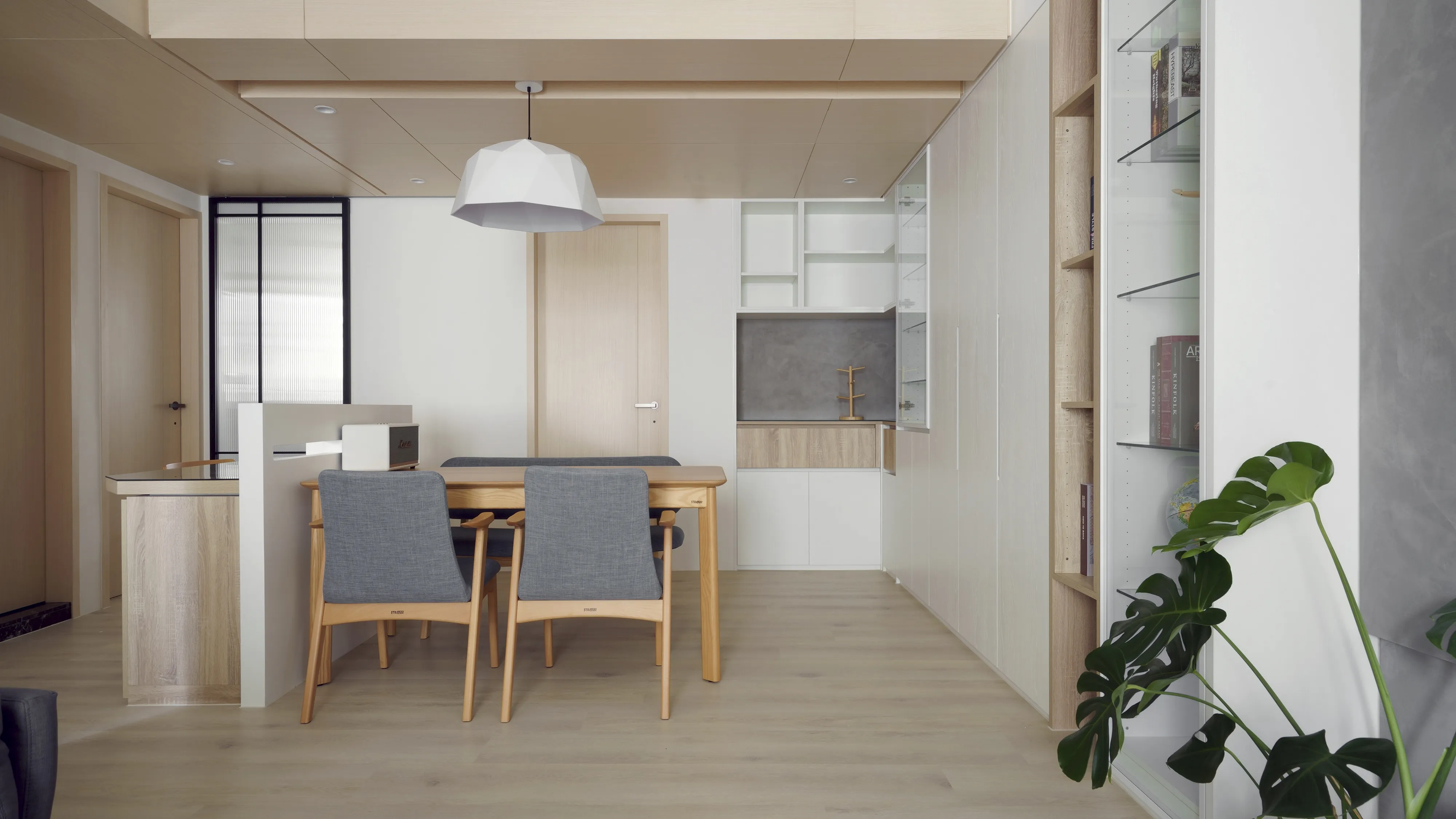 餐廳也跟主臥室借了空間 , 讓餐廳可以再放大 , 也不影響主臥室空間。