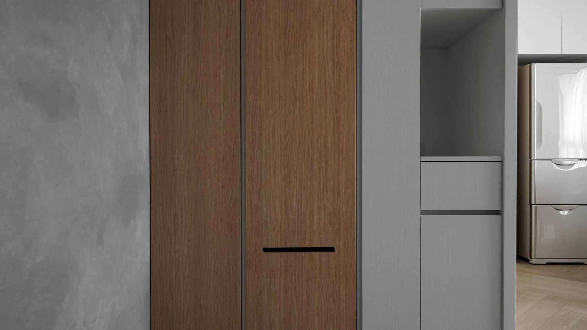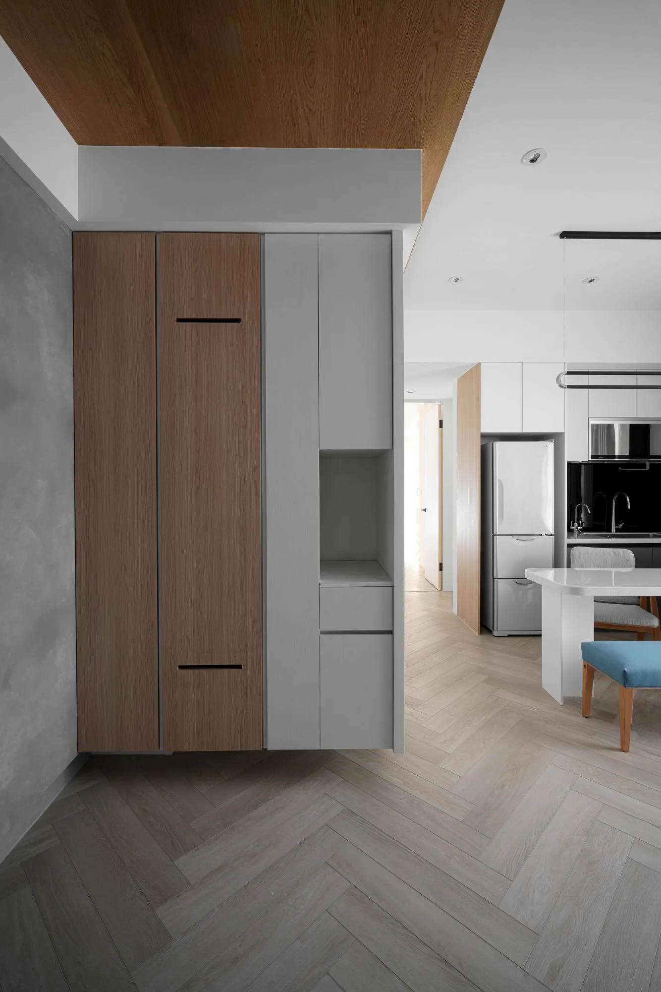 原有玄關空間偏大 , 部分調整浴室橫向尺寸 ,