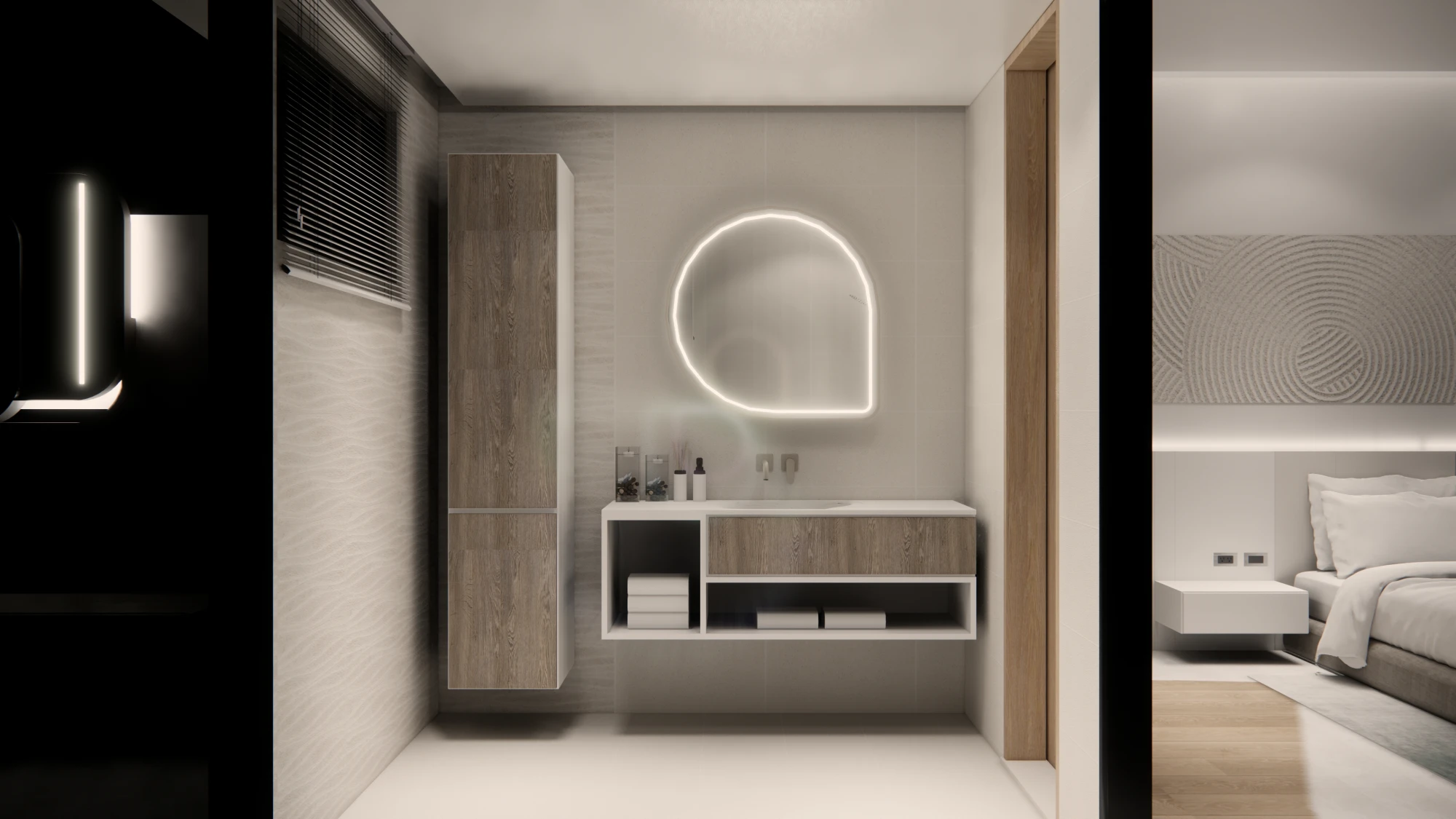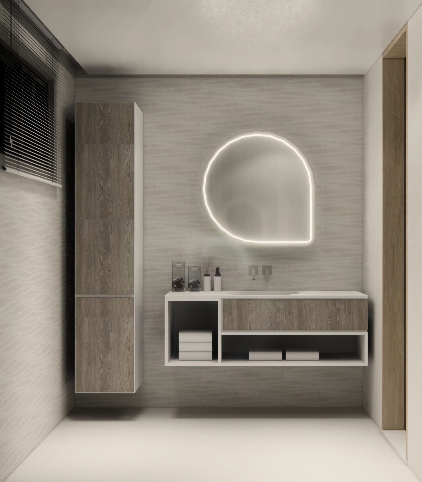 In the kitchen, the use of rust-flecked surface material on the cabinetry adds a unique texture. This special material reflects subtle gleams under the sunlight, achieving a perfect balance between modernity and coziness. The kitchen serves not only as a place for culinary endeavors but also as a gathering spot for family members to joyful moments together.