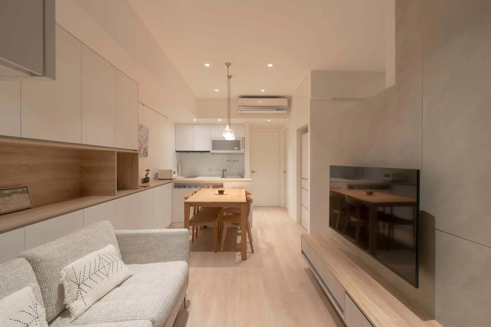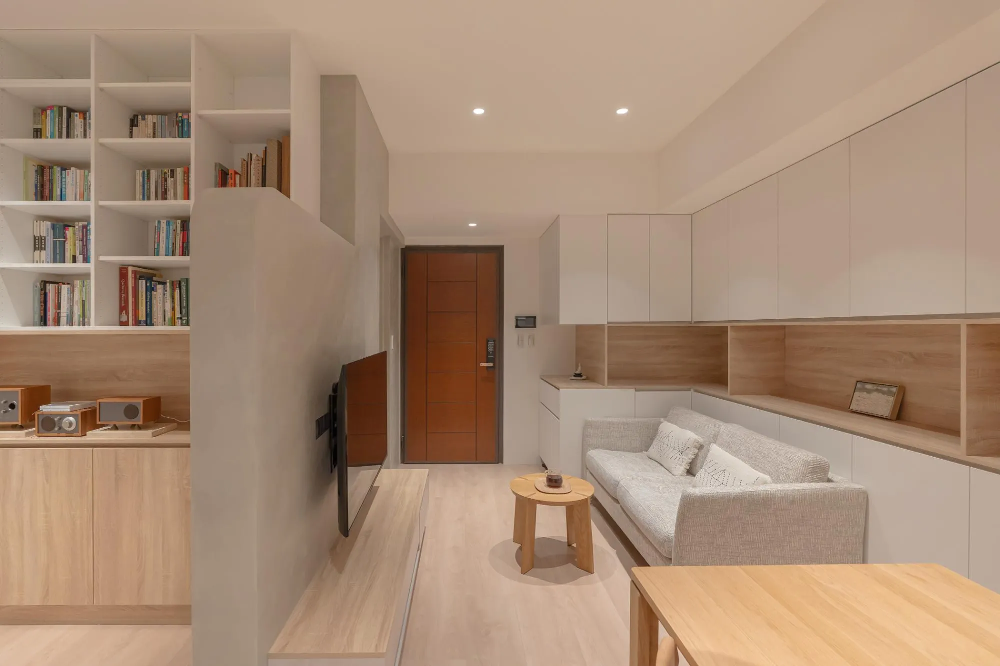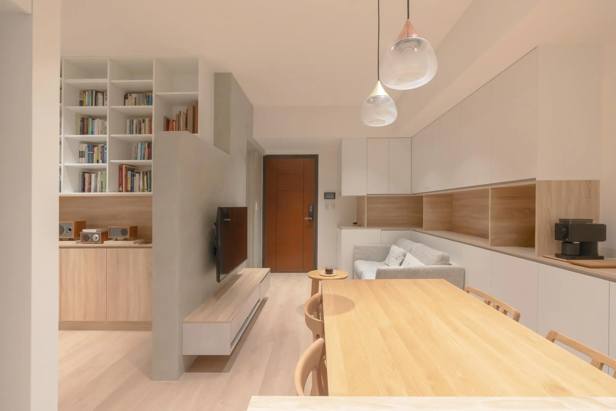 An open-plan living room, dining area, and study can form a continuous and fluid space, enhancing the sense of transparency and allowing natural light to penetrate every corner, thus increasing the overall spaciousness. This design not only provides a wide, social, and entertaining area but also maintains distinct functional zones. By using movable partitions or furniture, privacy can be created when needed, or the space can be divided for different purposes. Additionally, this design adapts to seasonal and lighting changes, allowing residents to make adjustments based on their living requirements.