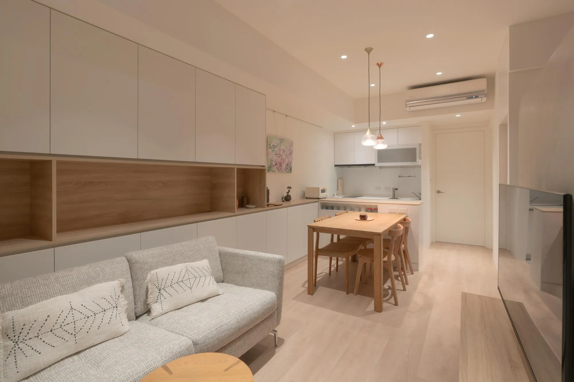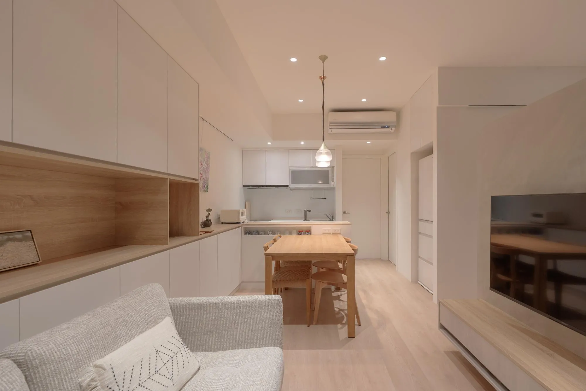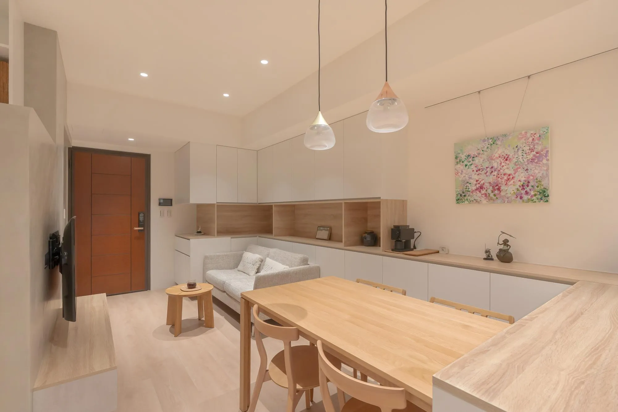 An open-plan living room, dining area, and study can form a continuous and fluid space, enhancing the sense of transparency and allowing natural light to penetrate every corner, thus increasing the overall spaciousness. This design not only provides a wide, social, and entertaining area but also maintains distinct functional zones. By using movable partitions or furniture, privacy can be created when needed, or the space can be divided for different purposes. Additionally, this design adapts to seasonal and lighting changes, allowing residents to make adjustments based on their living requirements.