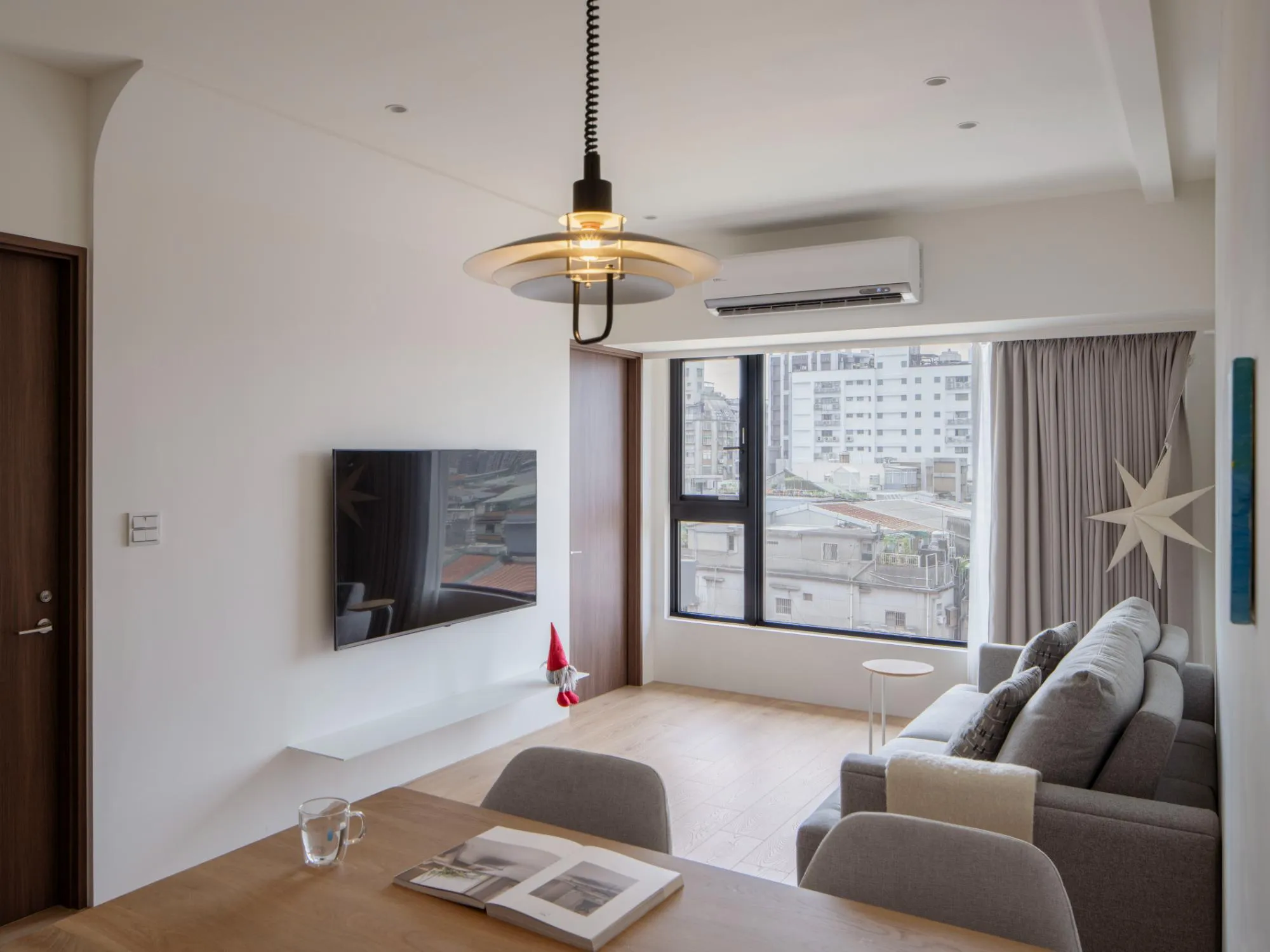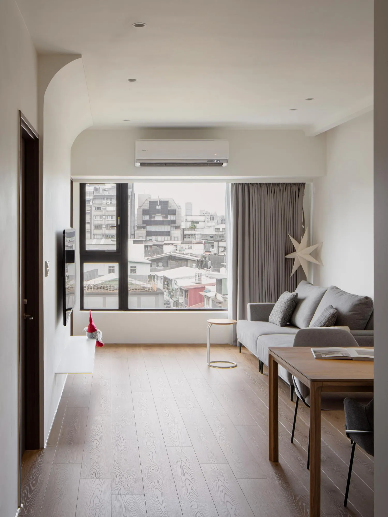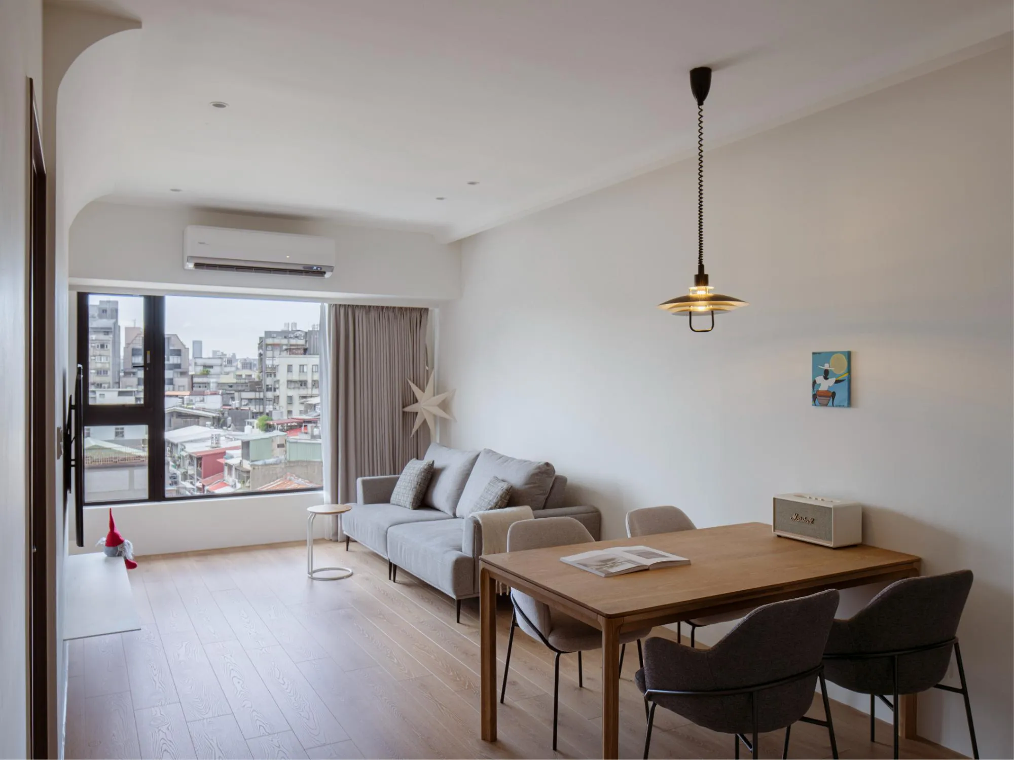 The city's rhythm often leaves us breathless, and for single women, having a home that is both vibrant and relaxing is nothing short of essential! This residence near Dadaocheng blends minimalist design with a natural ambiance, injecting a touch of freshness into daily life.nnThe large windows in the living room invite abundant sunlight, illuminating the white walls and lush greenery, instantly bringing the space to life. The spacious layout ensures every step flows effortlessly. Stepping into the bedroom, soft tones and a subtle fragrance soothe the soul, offering complete relaxation.nnDadaocheng's vintage tiles add a playful touch of character to the space, with delightful design surprises hidden in the details. This lively little haven redefines the meaning of home—it’s a place where one can slow down and rediscover joy.