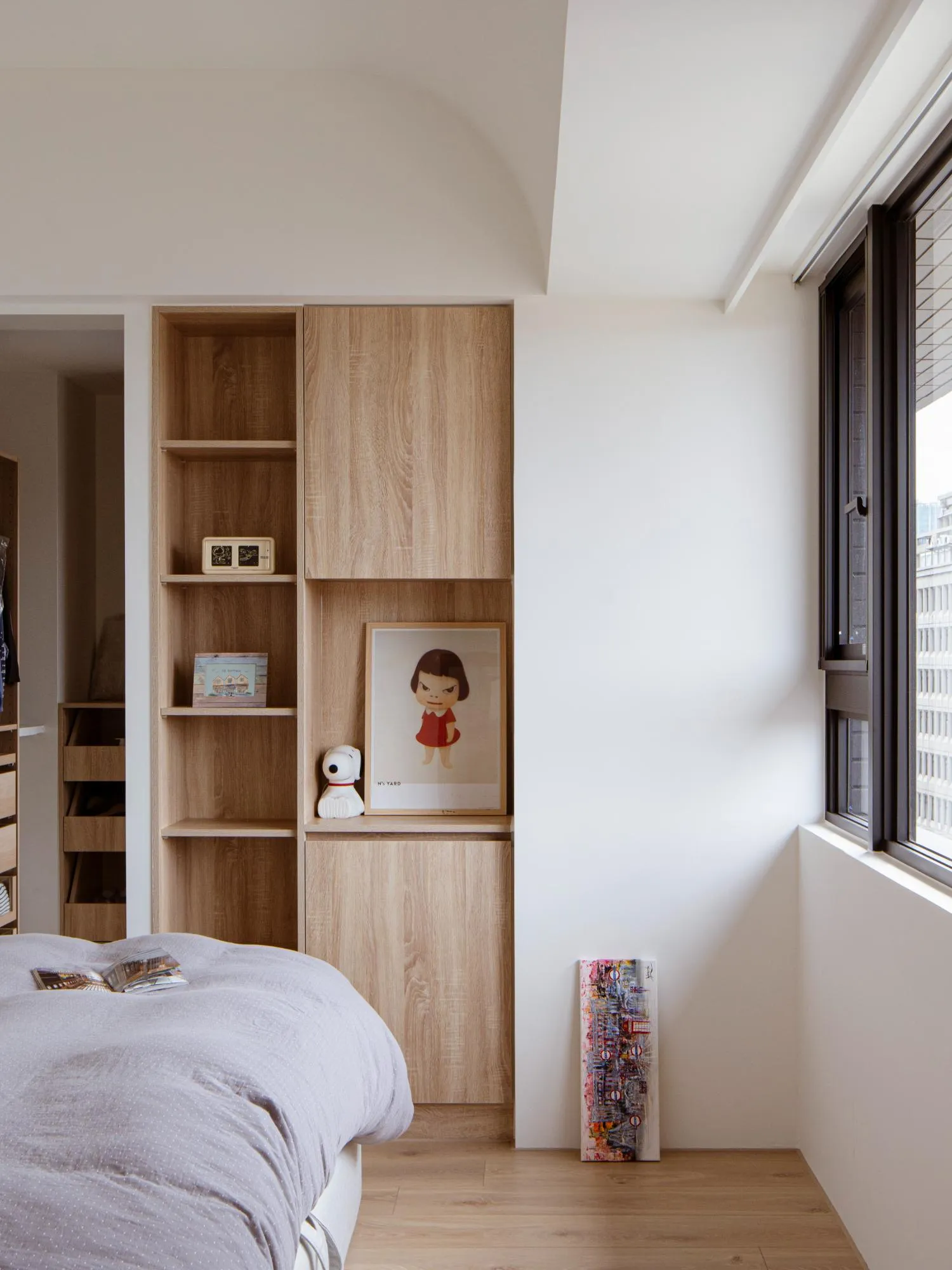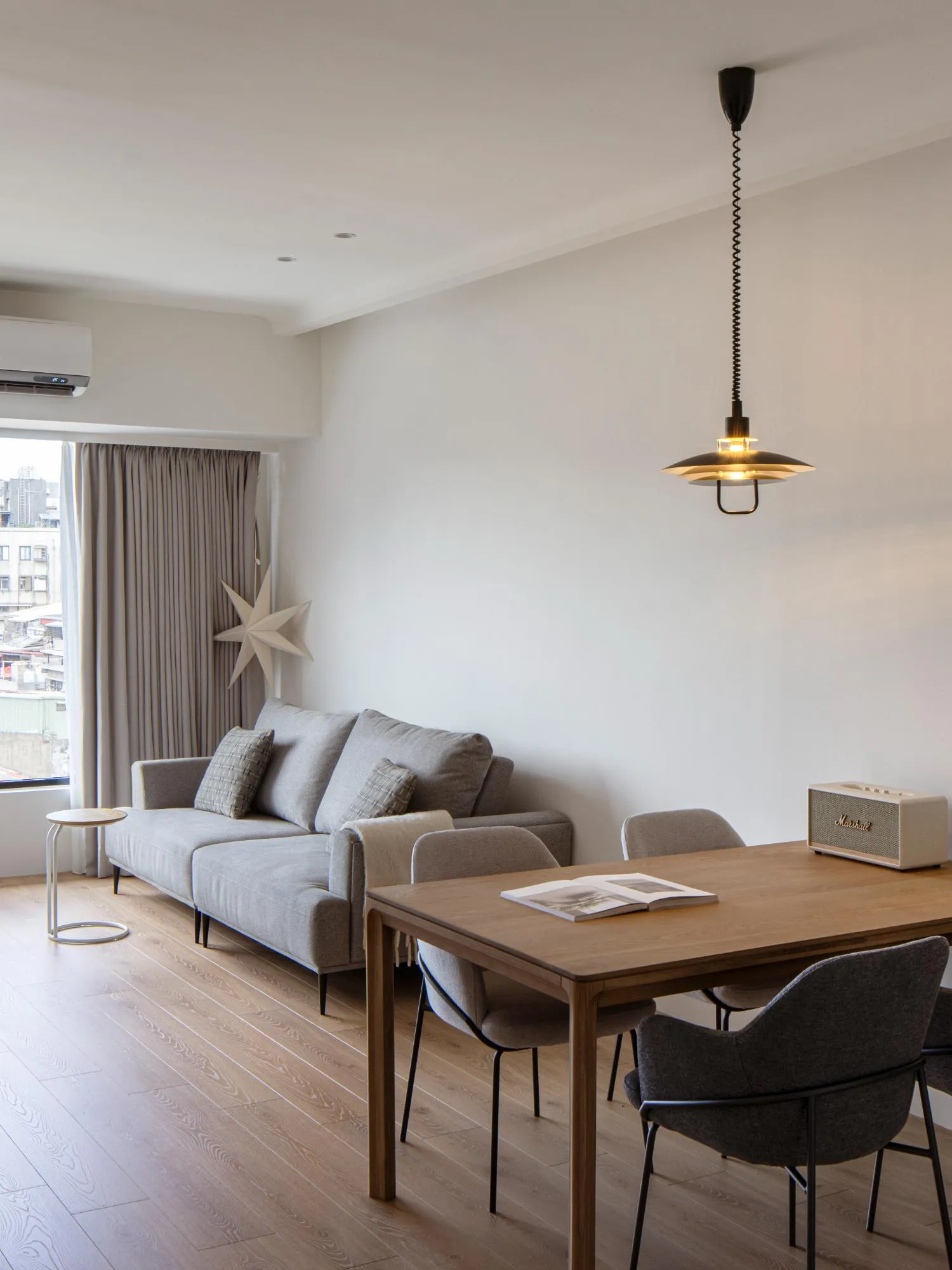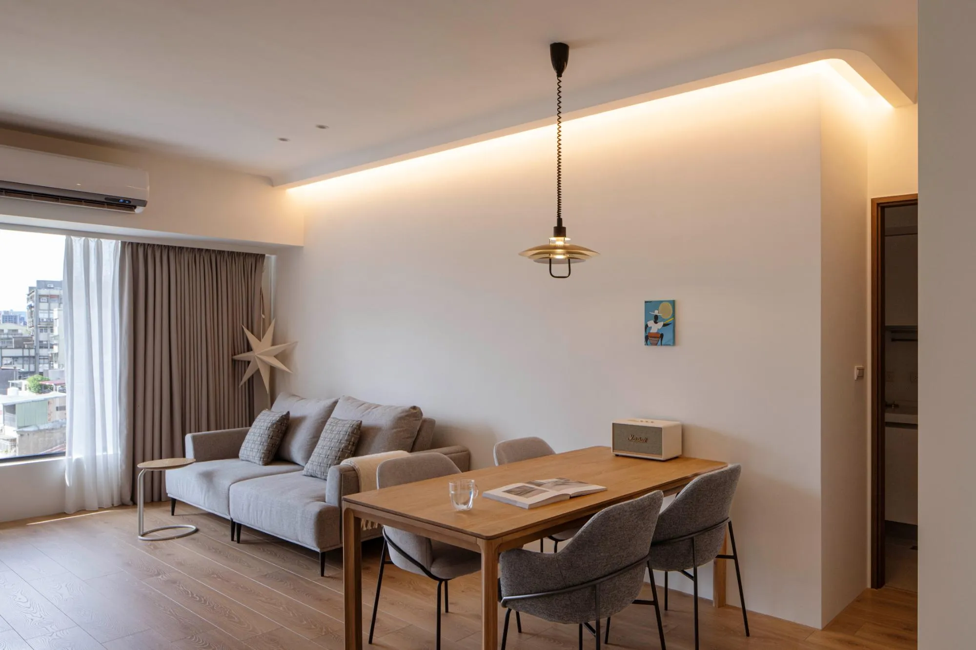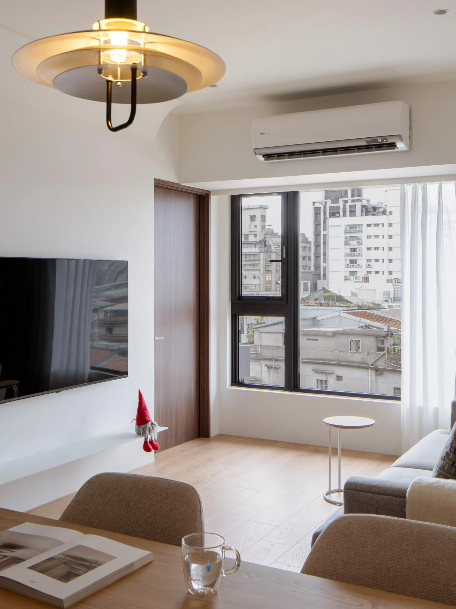 The city's rhythm often leaves us breathless, and for single women, having a home that is both vibrant and relaxing is nothing short of essential! This residence near Dadaocheng blends minimalist design with a natural ambiance, injecting a touch of freshness into daily life.nnThe large windows in the living room invite abundant sunlight, illuminating the white walls and lush greenery, instantly bringing the space to life. The spacious layout ensures every step flows effortlessly. Stepping into the bedroom, soft tones and a subtle fragrance soothe the soul, offering complete relaxation.nnDadaocheng's vintage tiles add a playful touch of character to the space, with delightful design surprises hidden in the details. This lively little haven redefines the meaning of home—it’s a place where one can slow down and rediscover joy.